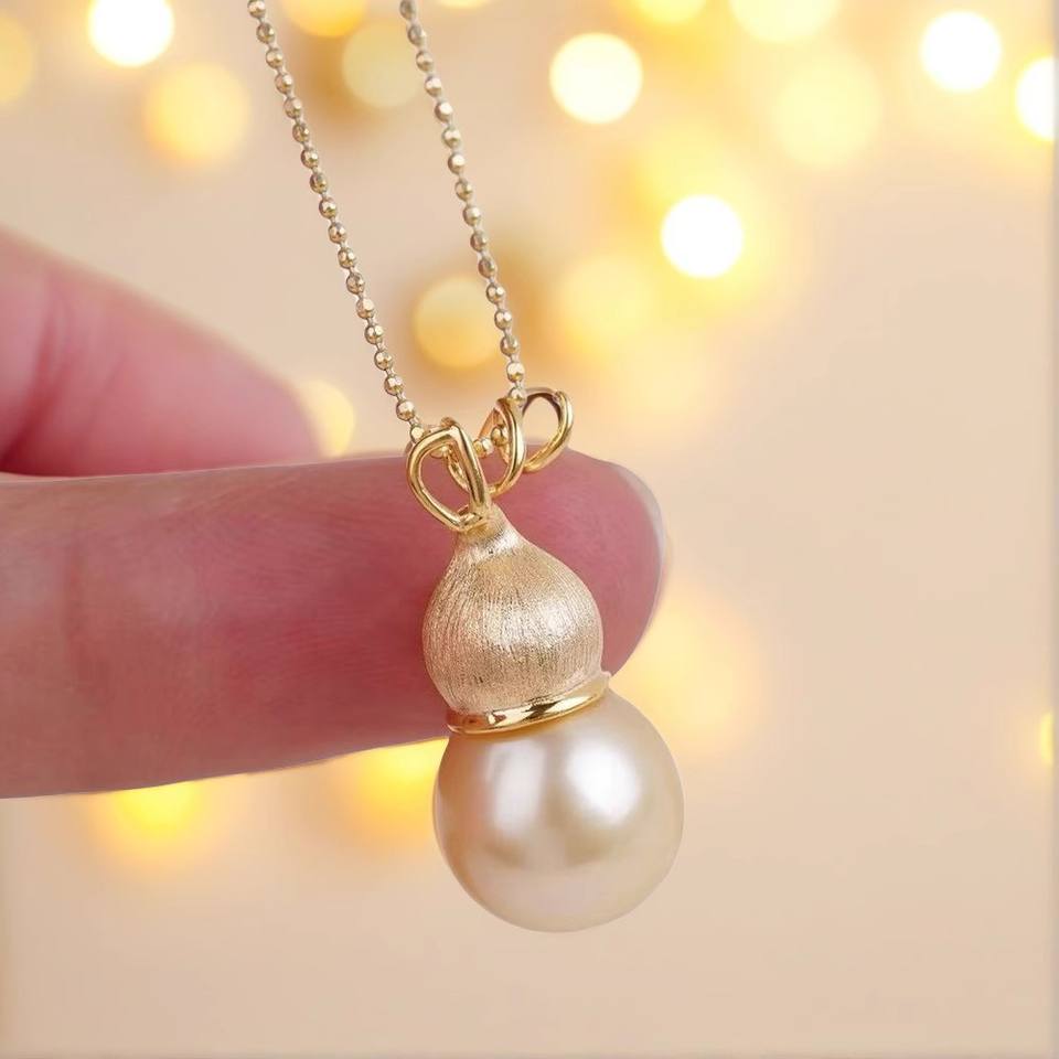 DIY 31301 Accessories S925 Silver Pendant with 11-13mm Round Pearl & Empty Hanging Gourd Simple Necklace Pendant