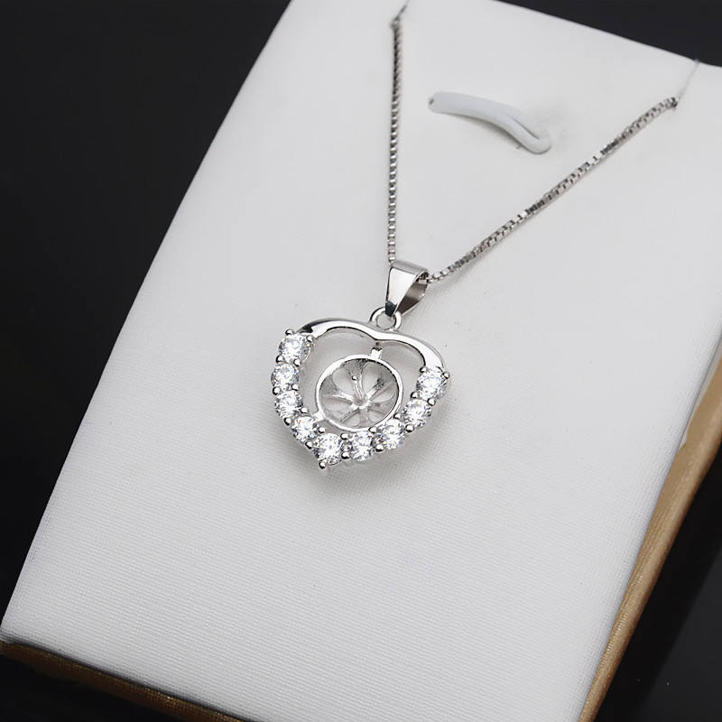 DIY Accessories for Women S925 Silver Heart-Shaped Pendant with Jade Agate and 10-11mm Pearl Gold Plated Empty Setting 646