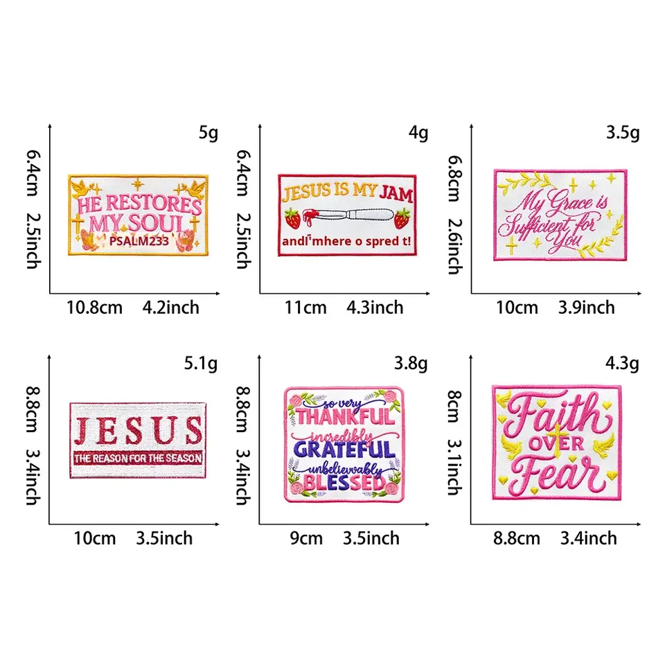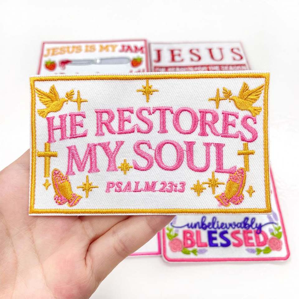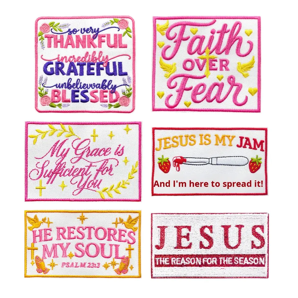 Patchs thermocollants brodés en polyester avec phrases religieuses et textes anglais pour chaussures, chapeaux et vêtements