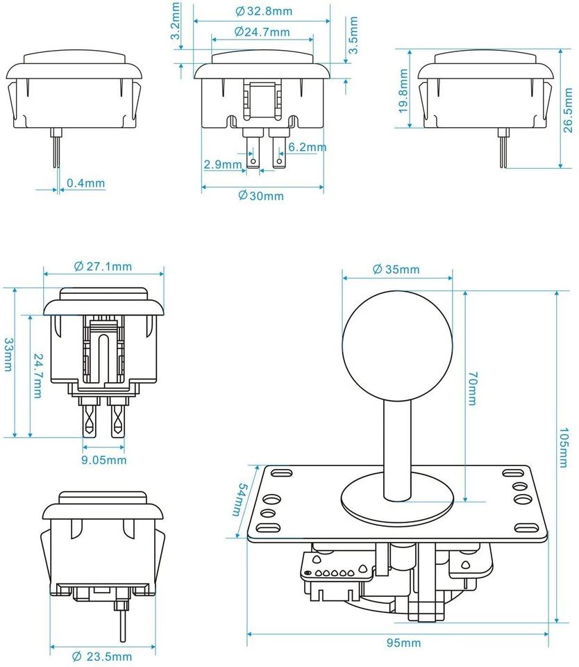 24mm and 30mm copy sanwa push button with built-in microswitch
