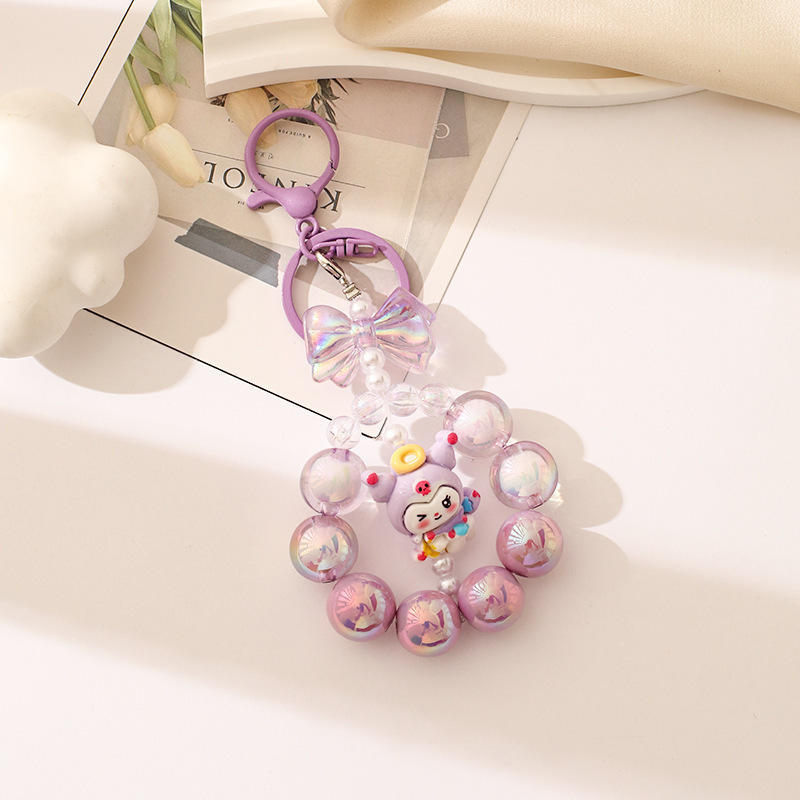 Porte-clés DIY en perles, lanière de téléphone en pompon duveteux, porte-clés lumineux animal de dessin animé, acrylique écologique pour filles, cadeau mignon Kawaii