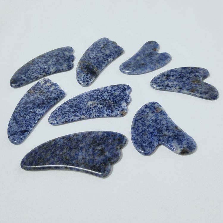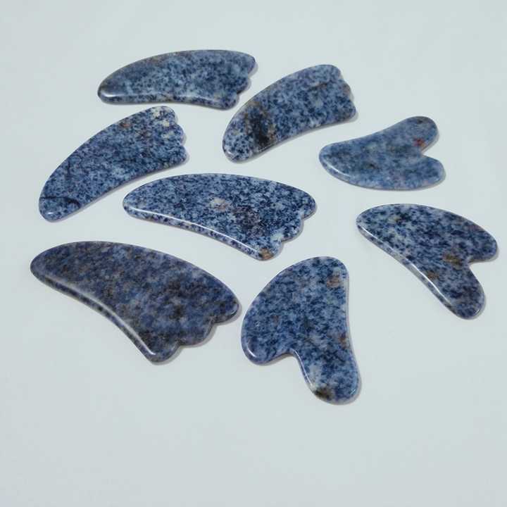 Bricolage Blue Spot Jade Gua Sha grattage outil de Massage pierre Guasha planches v forme visage masseur bien-être cristal