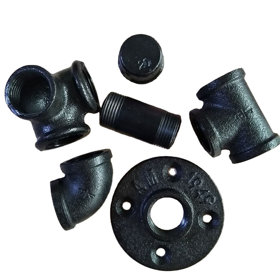 Bar à café DIY avec raccord de tuyau en fer forgé brut rétro noir fileté BS 1/2 pouce, bride de sol