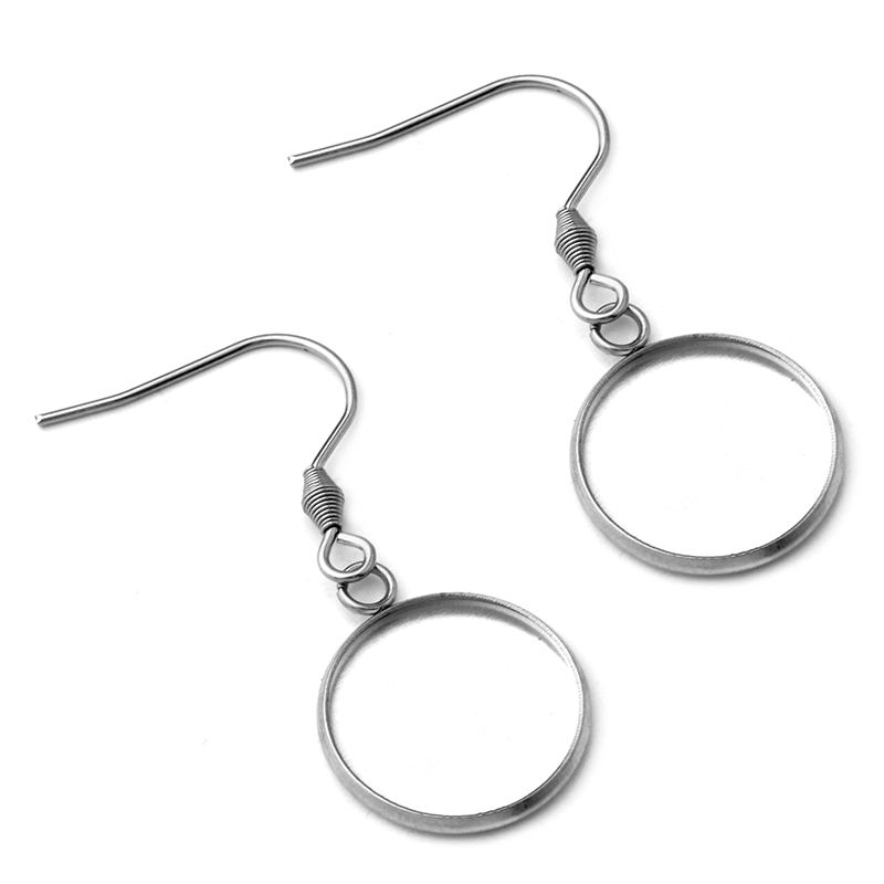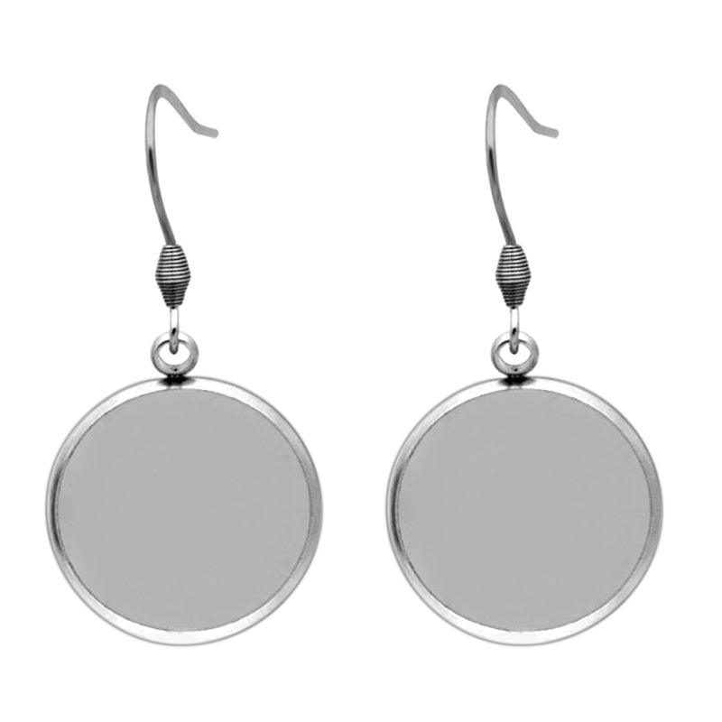 Blancs de boucles d'oreilles bricolage-Réglages de plateau de lunette ronde avec crochets en argent sterling Fournitures