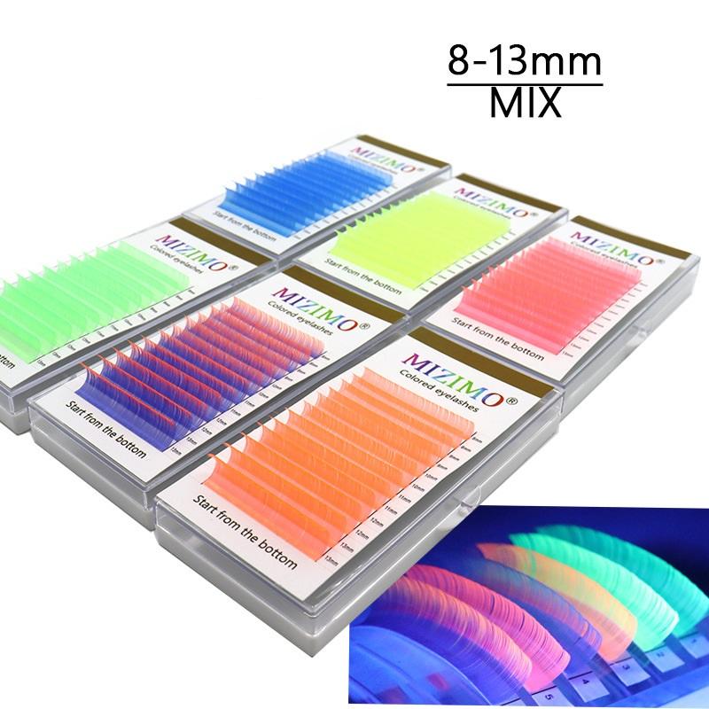 Extensions de cils DIY, cils colorés d'anime, cils individuels mélangés de 8 à 13 mm, cils fluorescents arc-en-ciel, cils en grappe