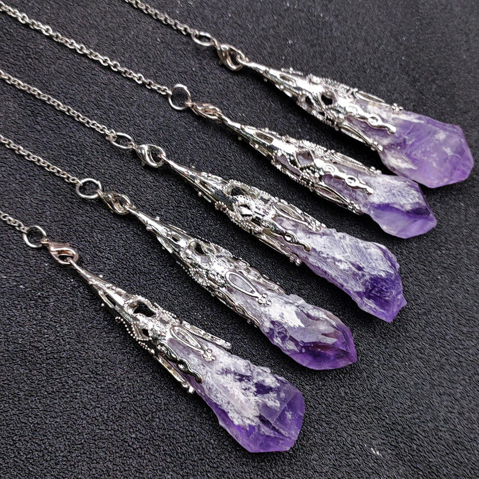 Pendentif en amas d'améthyste naturelle irrégulière, pierre brute, pierre de guérison énergétique, fabrication artisanale, directement de l'usine, pour les amoureux