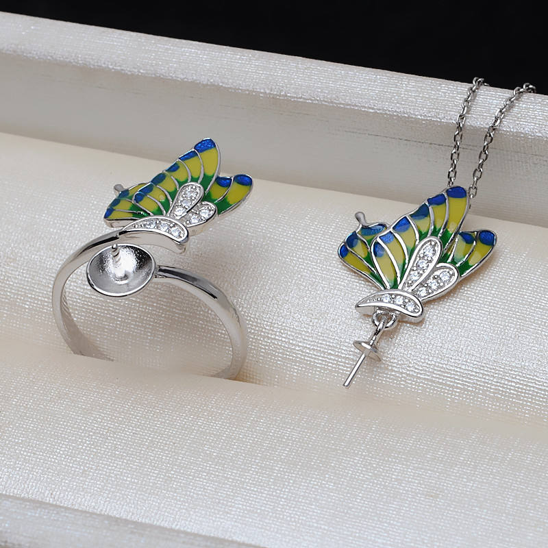 DIY Fashion Jewelry Set S925 Silver Butterfly Pendant 8-10 Pearl Empty Holder 3141 Head Earring Ring with Dropper Accessories