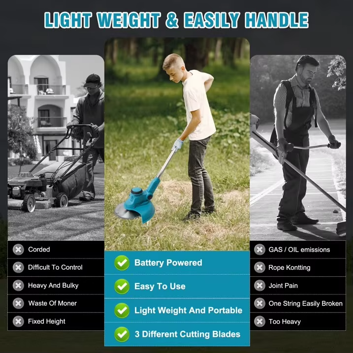 Tondeuse à gazon électrique sans fil DON FELIZ AE-117 21V, lame rotative 4 temps, robuste, avec 2 batteries rechargeables, qualité DIY, OEM