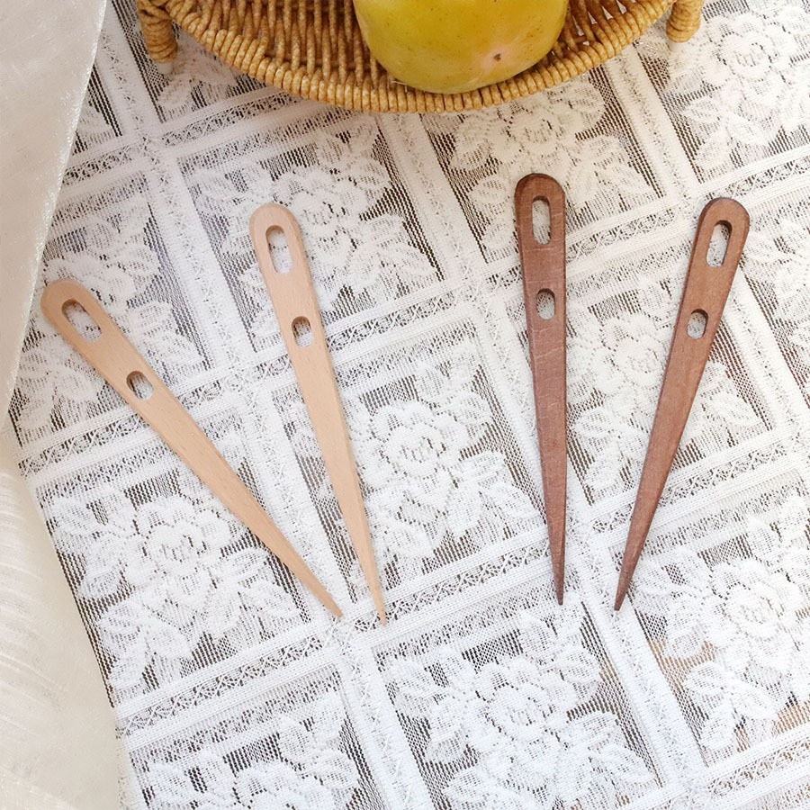Outil de crochet en bois massif fait main avec navette et aiguille à tricoter à gros chas pour débutants