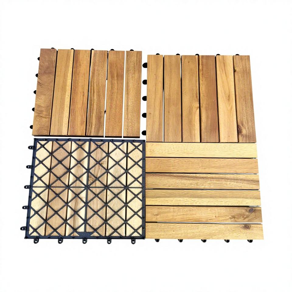 Dalles de terrasse carrées en acacia modernes, étanches, à emboîtement double, 300x300mm, pour intérieur/extérieur, décoration de jardin, terrasse