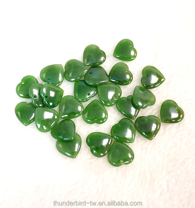 Proudct Name::Natural Green Nephrite Jade Heart Cabochon