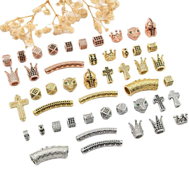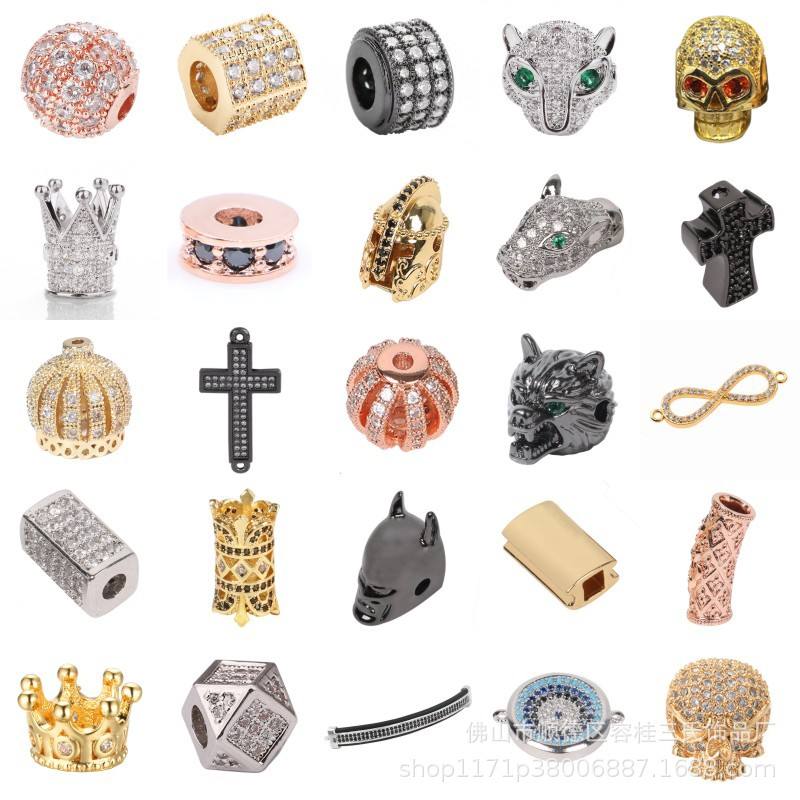 DIY Micro Zircon Cristal Métal Entretoise Perles Bijoux Accessoires Qualité Boule En Laiton Loup Crâne Croix Couronne Perles pour Bracelets