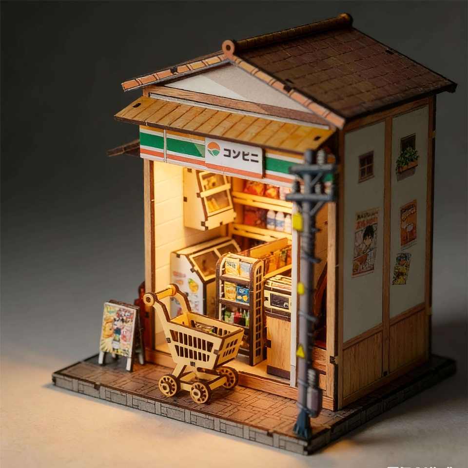 Kit de maison miniature à faire soi-même et coin lecture japonais - Ensemble complet de maison miniature à faire soi-même pour une présentation créative de bibliothèque et décoration