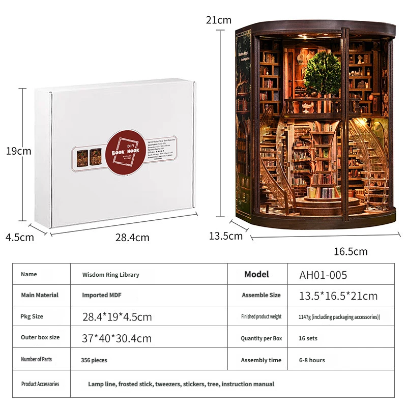 Kit de construction DIY Maison miniature Bibliothèque rotative Wisdom Ring, Modèle miniature en bois à assembler, Jouet puzzle DIY