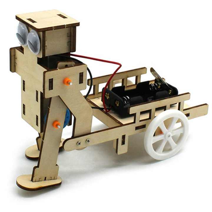 Kits de modèles de bricolage Robot + Handcart Centres d'activités Jouet mécanique Casse-tête Kits de fabrication de robots éducatifs en bois
