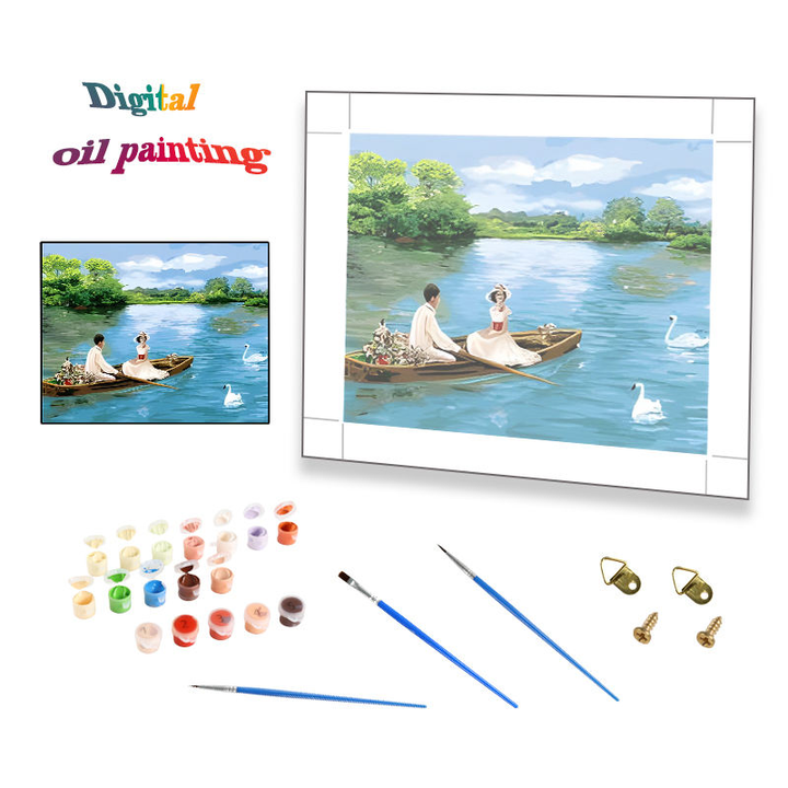 Peinture par numéros DIY : Couple naviguant sur un ruisseau, en velours de haute qualité, idéal pour les cadeaux de la Saint-Valentin et la décoration intérieure