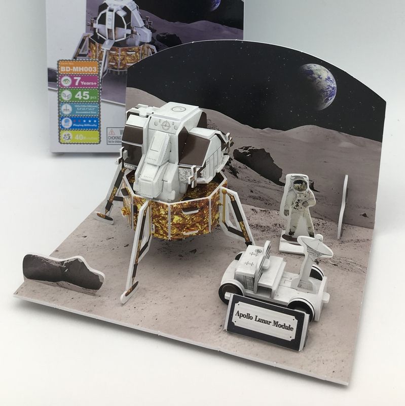 Puzzles en papier à faire soi-même, modèle de module lunaire Apollo 3D, kit de modèle - Ensemble de jouets spatiaux avec rover lunaire et plan d'atterrissage sur la lune