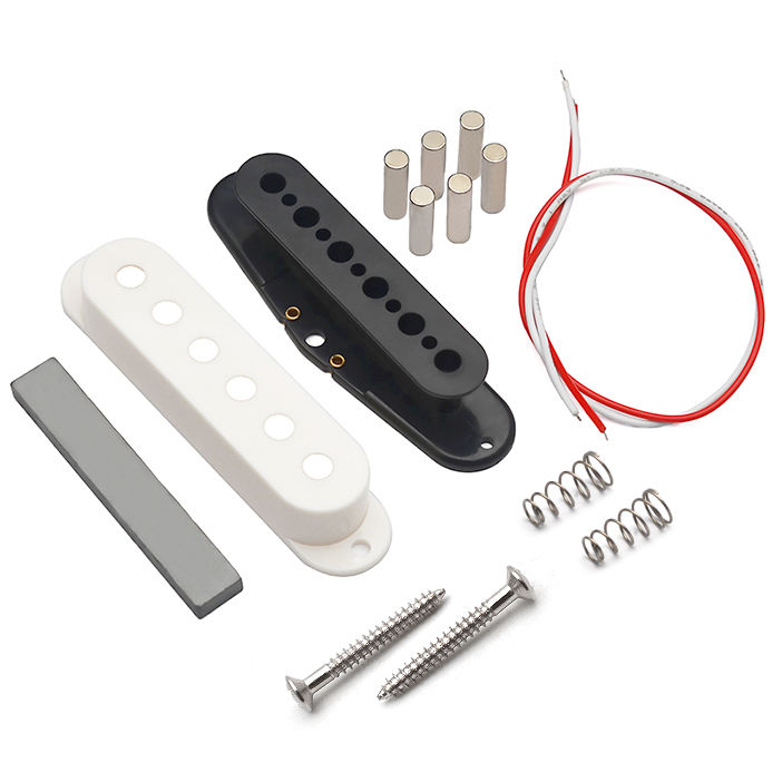 Kits de pièces DIY pour la fabrication de micros de guitare : bobine de micro simple, capot, barre en céramique, câble, pièces de contact, noir/blanc/jaune