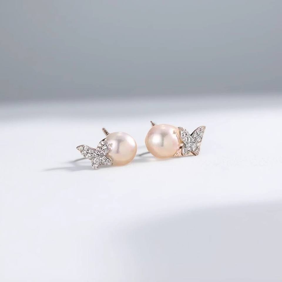 Accessoires en perles DIY, clous d'oreille en argent S925, support vide, style papillon, boucles d'oreilles tendance avec perles rondes de 6 à 9 mm, style tendance