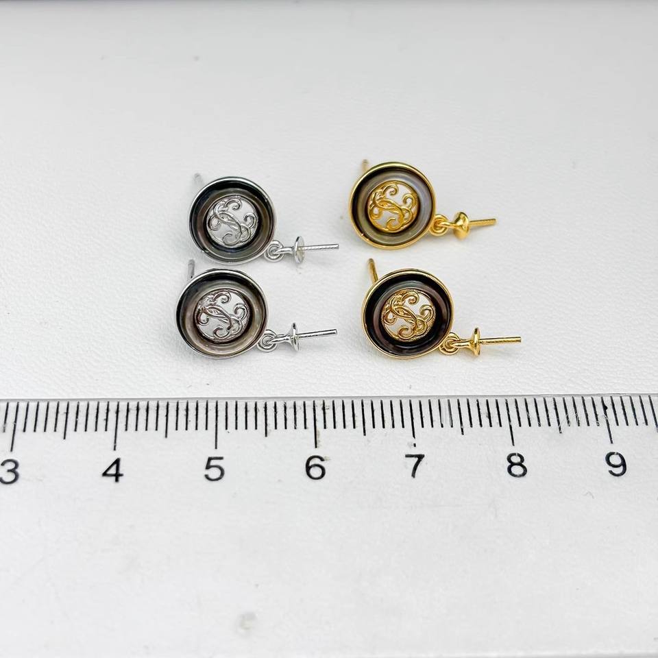 DIY Pearl Accessories S925 Silver Empty Stand with 9-13mm Round Beads 22373DIY Black Fashion Earrings