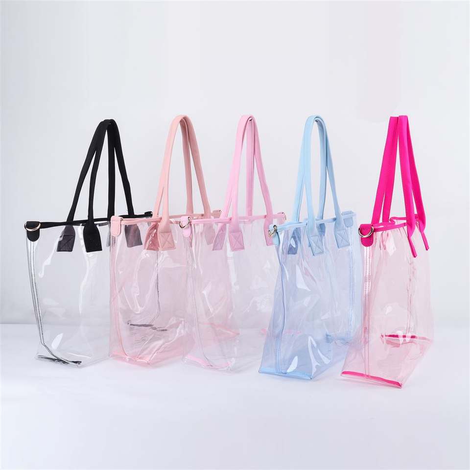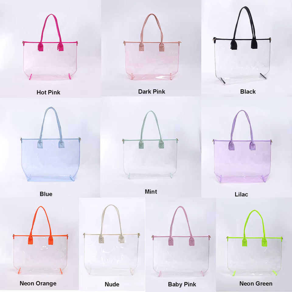 Sac de plage imperméable en PVC épais et durable pour femme, avec broderie personnalisée monogramme lettre ombre, idéal pour l'été et les voyages
