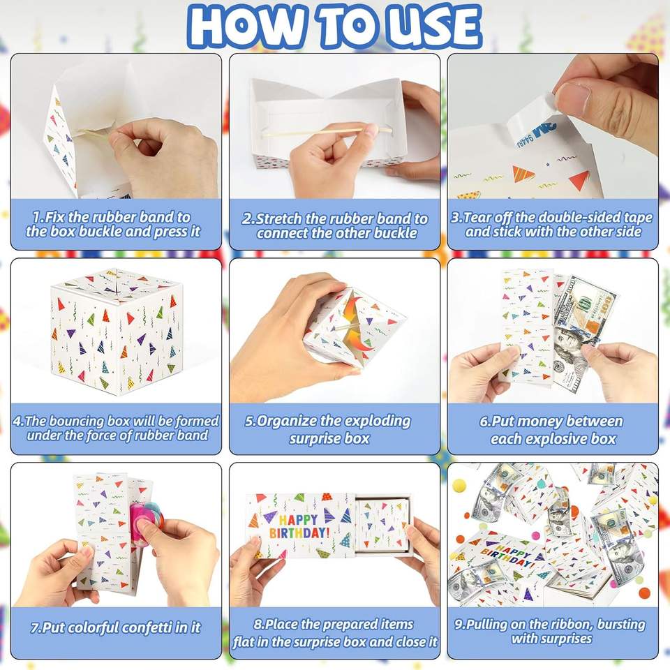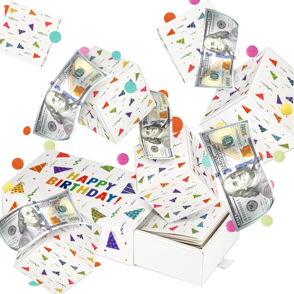 Boîte cadeau d'anniversaire pliante pop-up DIY Confetti de style explosif Money Bank Cash Idea for Surprise Happy Birthday Paper Boxes