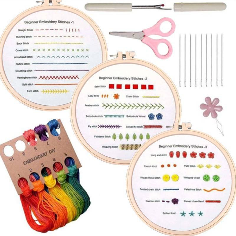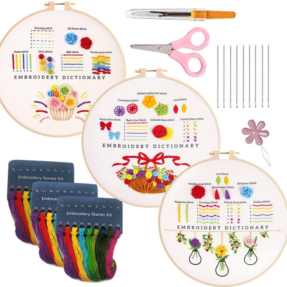 Kit de broderie au point de croix avec fils à broder et cerceaux, point de croix mignon, ensemble de travaux manuels DIY