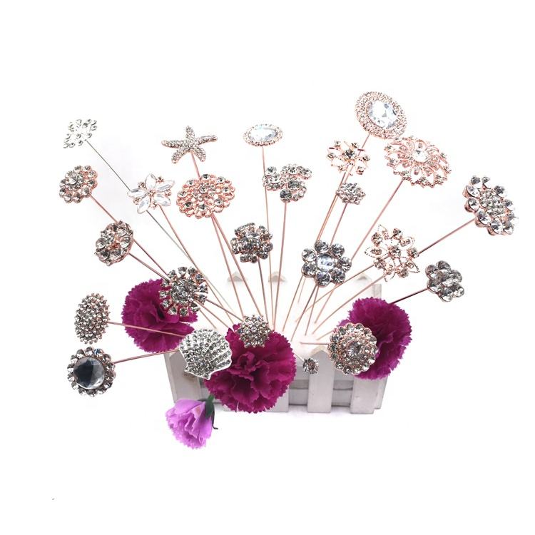 DIY Rose Or Métal Cristal Strass Bouquets Beaucoup de Cristal Fleur Broche pour Bijoux Vêtements Parfait Perle Pierre Principale Pick