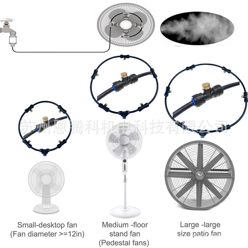Ventilateur annulaire DIY à pulvérisation, diamètre 40 cm, système de refroidissement et d'humidification basse pression avec adaptateur métallique pour usage domestique