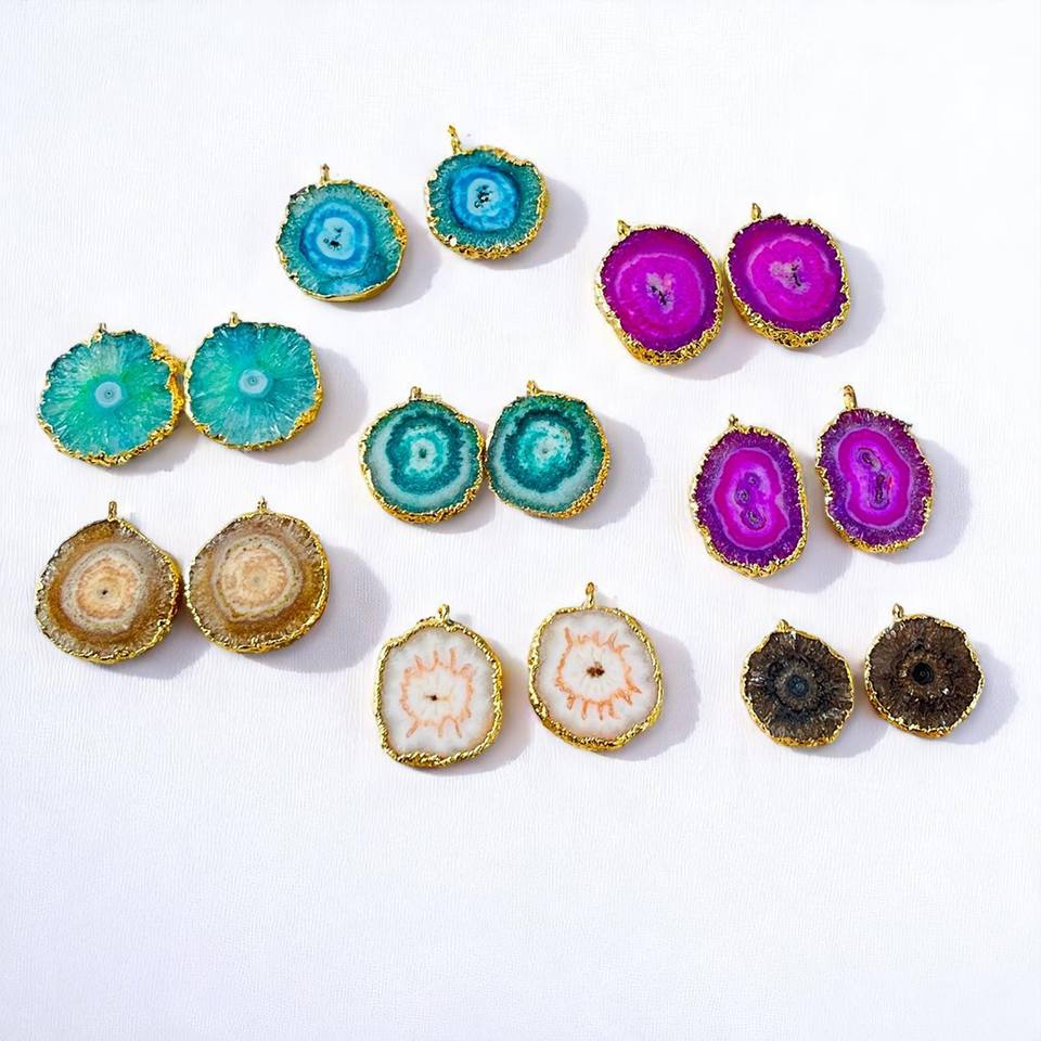 DIY Argent Sterling Vert Solaire Quartz Druzy Plaqué Or Charme Faire Pendentif Collier pour la Vente en Gros