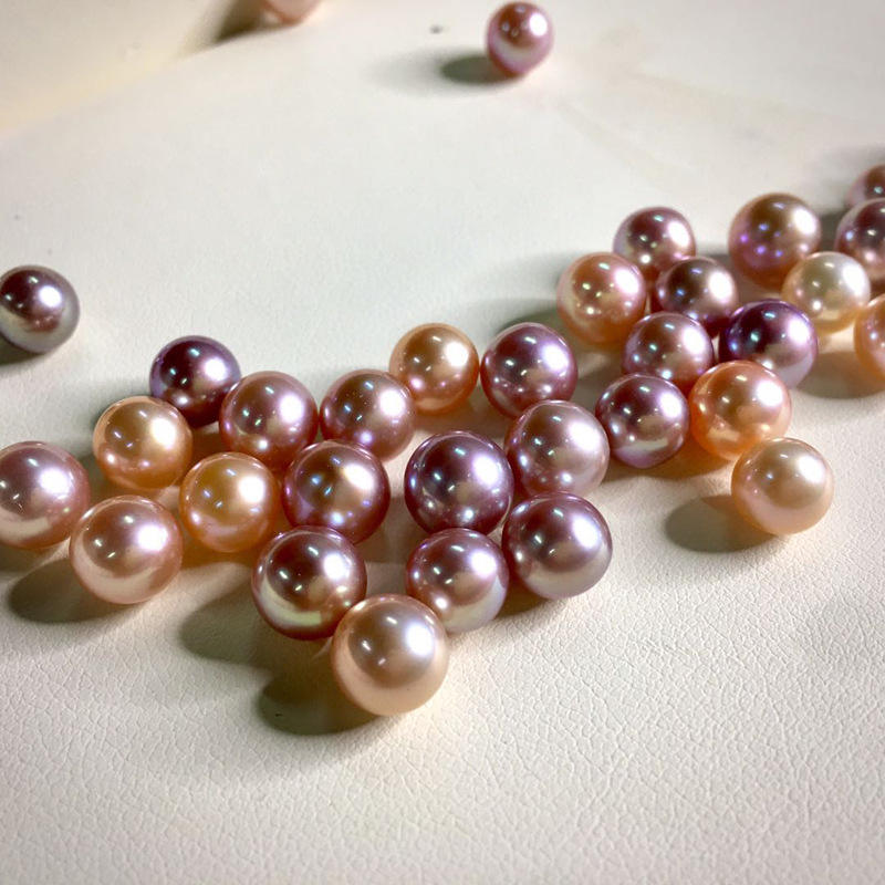 Perles d'eau douce rondes lâches, colorées, fortes et brillantes, de 6 à 8 mm, légèrement imparfaites, demi-percées, perles nues granulaires