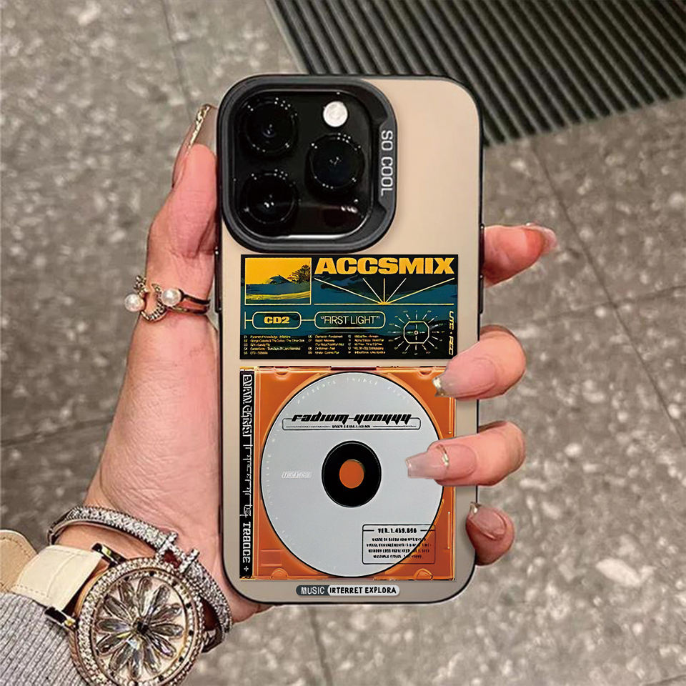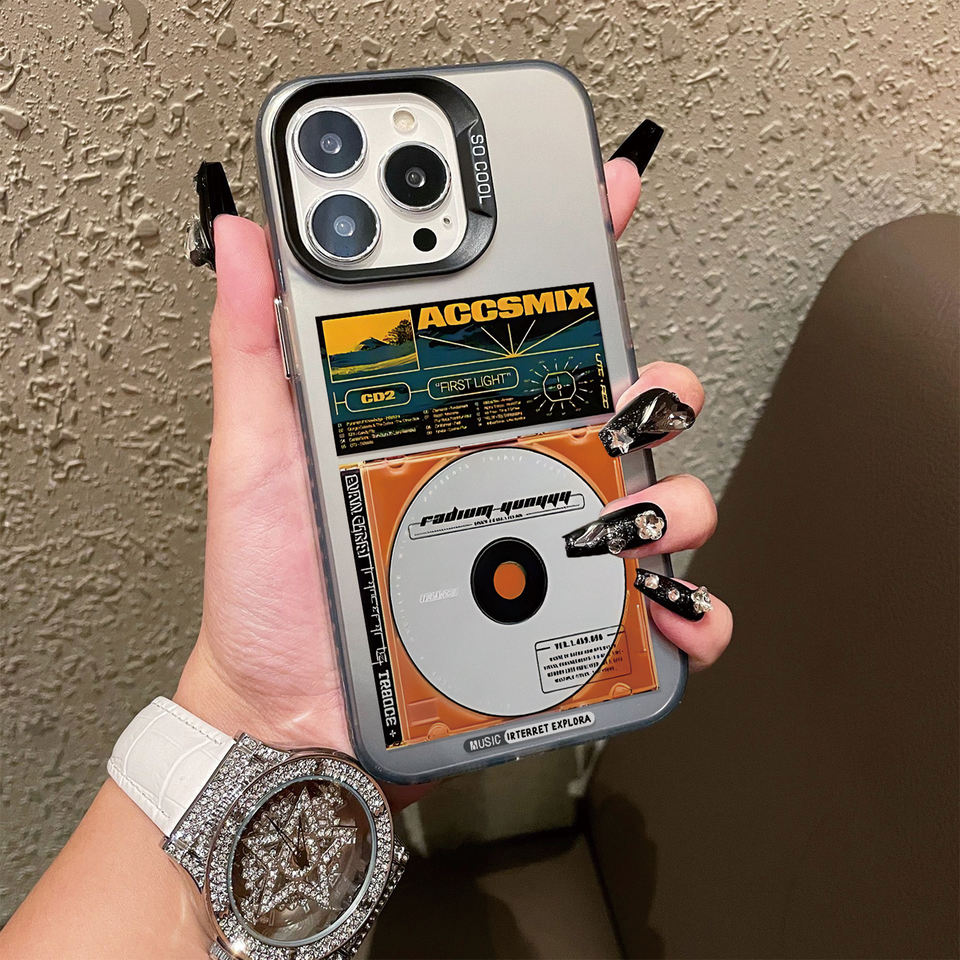 Coque de téléphone portable DIY en TPU motif CD rétro pour iPhone 11-17, noir mat, peinture UV, anti-traces de doigts, antichoc, protection de l'objectif