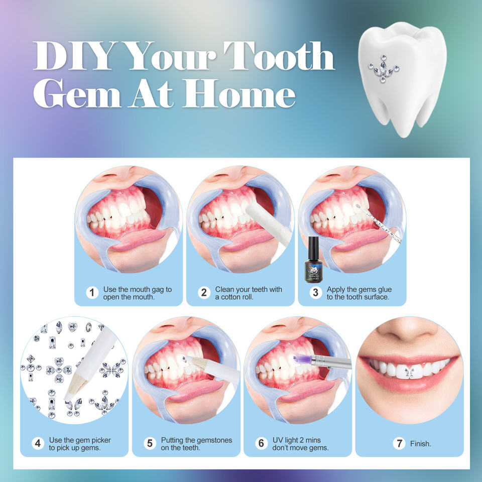 Kit de gemmes dentaires DIY | Créez des bijoux dentaires de qualité salon à domicile, cristaux imperméables longue durée avec kit d'application premium