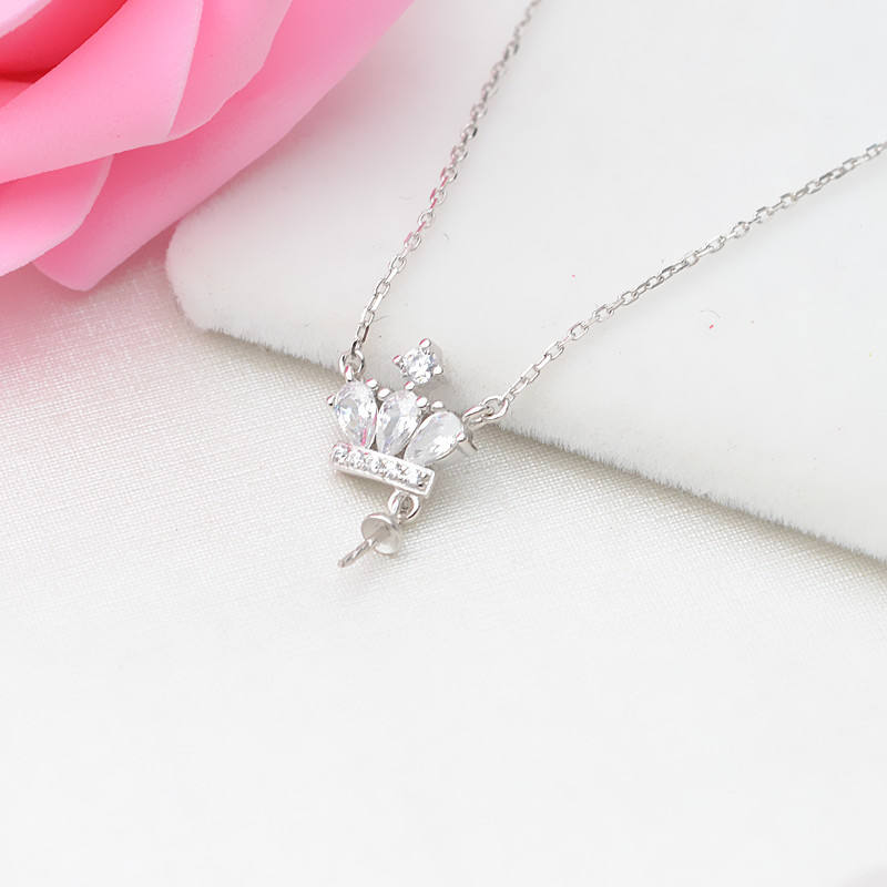 DIY Women's S925 Silver Crown Necklace Fashion Pendant Clavicle Chain with Semi-Finished Accessories for Jewelry Making