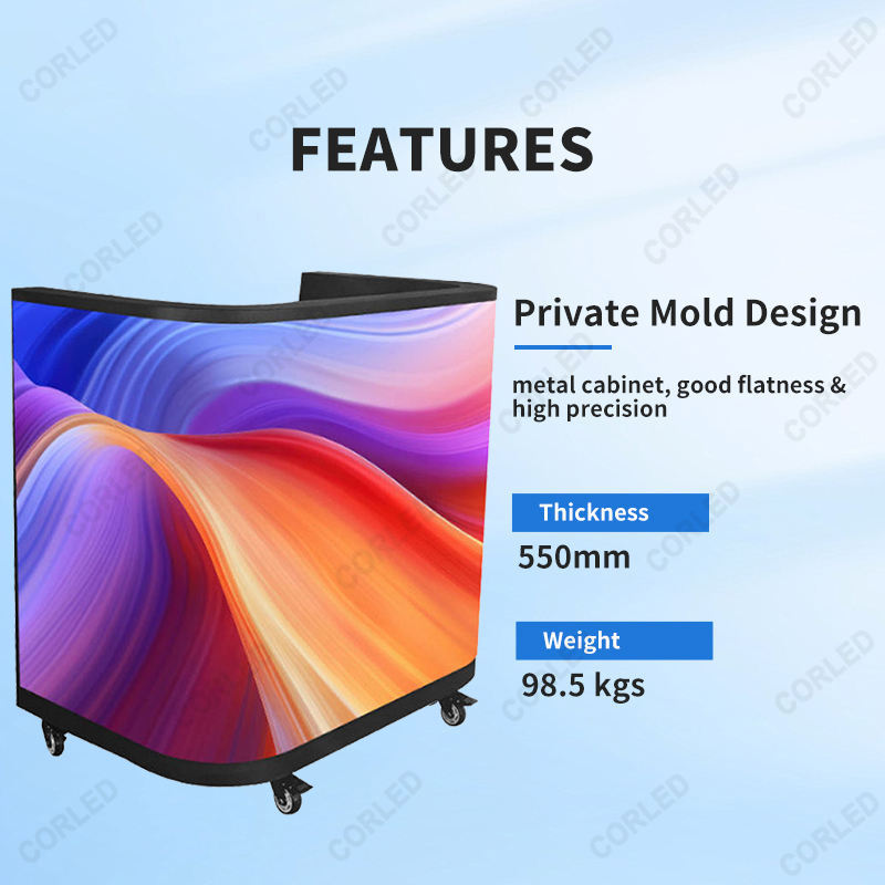 Table de DJ portable avec écran d'affichage et éclairage LED pour bars, boîtes de nuit, mariages, hôtels, marchés et boutiques