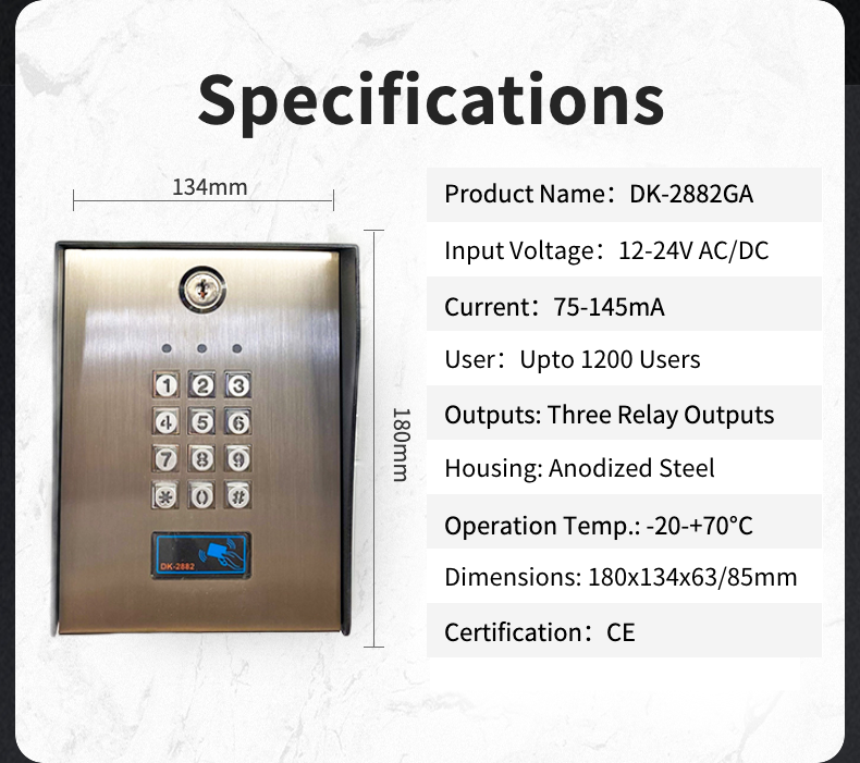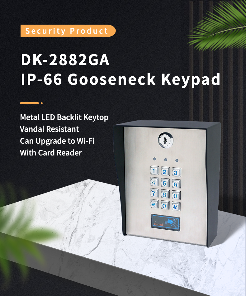 DK-2882GA (P0) Gooseneck Pole Mount Smart RFID Card Reader Access Control Keypad 125kHz Frequency Customizable Logo Support