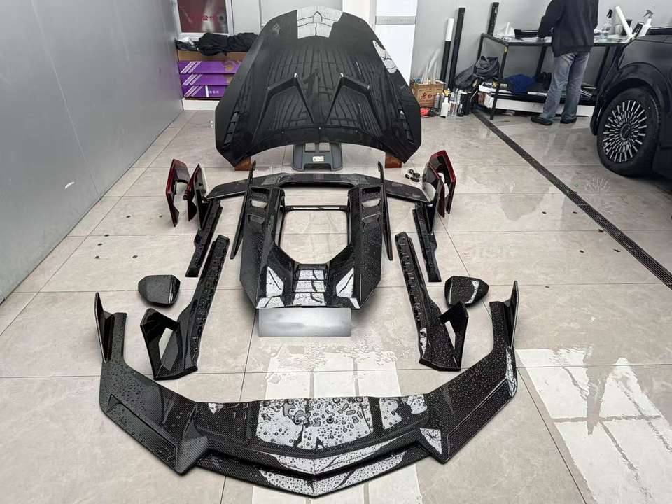 Kit carrosserie en fibre de carbone sèche style DK pour Lamborghini Revuelto, lèvre avant en fibre de carbone sèche, jupe, diffuseur arrière, spoiler, capot, kit carrosserie