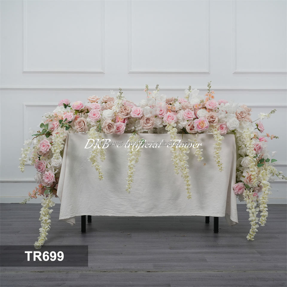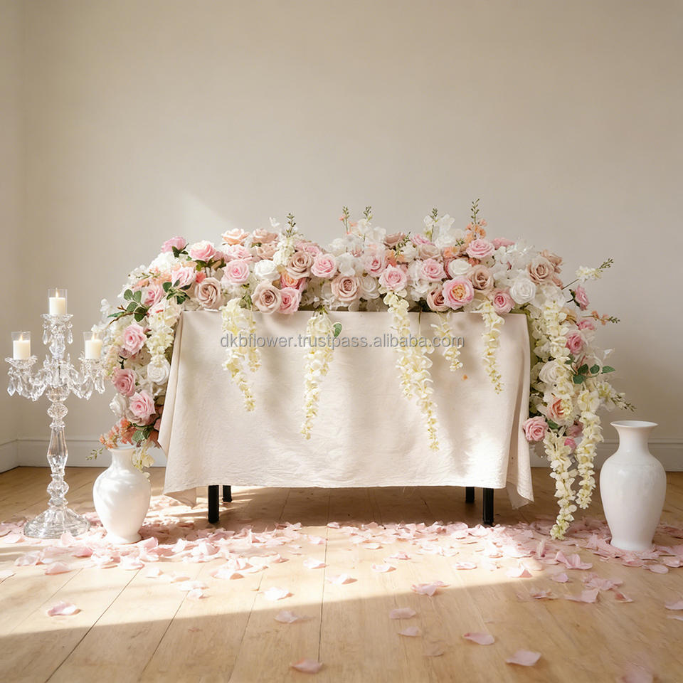 DKB Guirlande de fleurs artificielles en soie rose personnalisée avec feuilles pour décoration de mariage