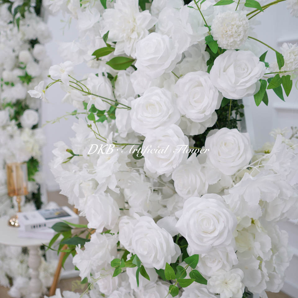 Fournitures de décoration de mariage de personnalisation d'usine DKB arc en corne de Rose blanche artificielle pour la décoration de fond de mariage