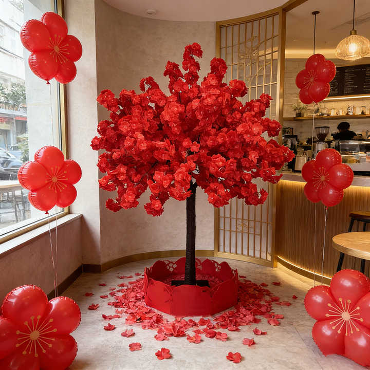 DKB Nouveauté Promotionnelle Arbre de cerisier artificiel en soie rouge sur mesure pour la décoration intérieure, Nouvel An chinois et Saint-Valentin