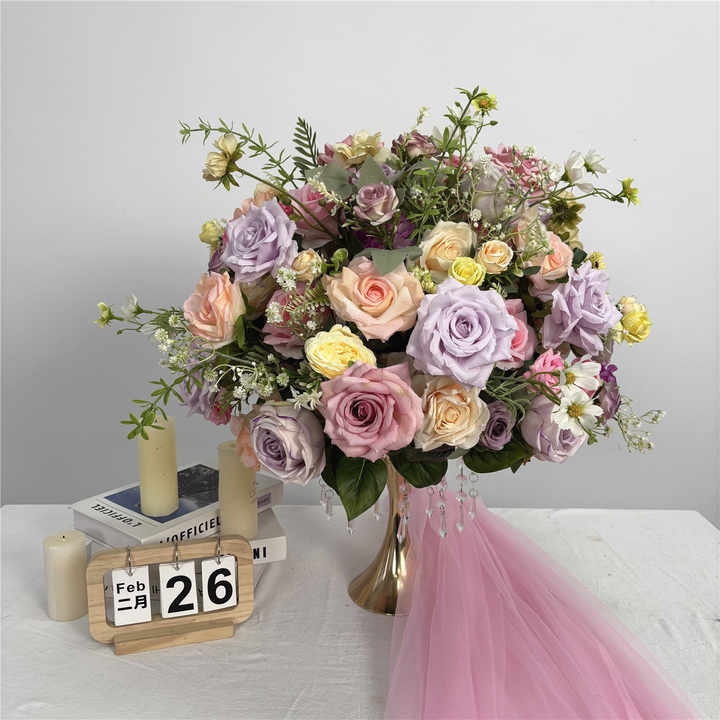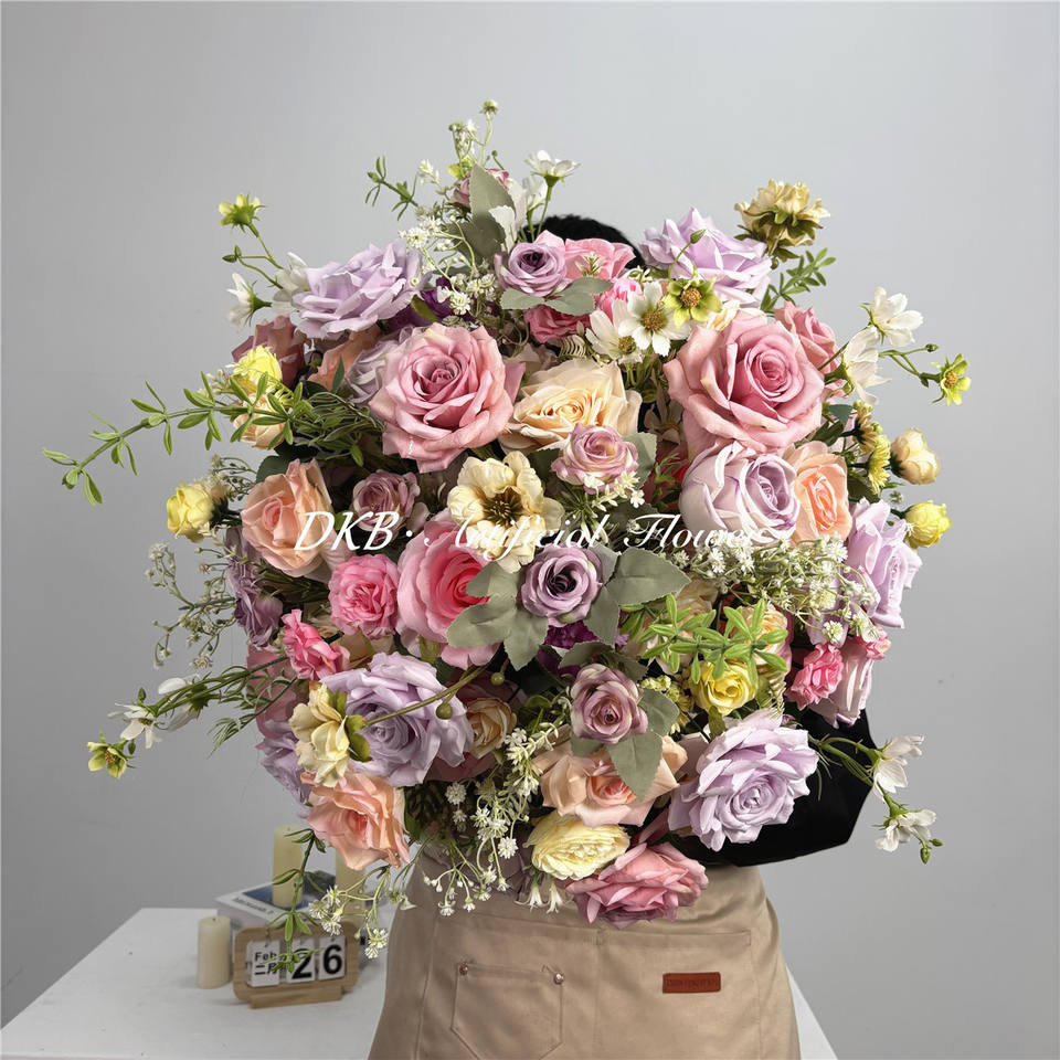 Boules de fleurs artificielles réalistes DKB, roses en soie, centres de table faits à la main pour mariage, décorations de table en gros, Noël, Nouvel An chinois
