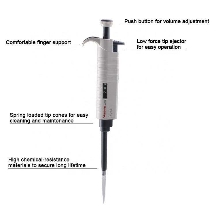 Micro pipette mécanique à volume réglable de laboratoire à canal unique DLAB