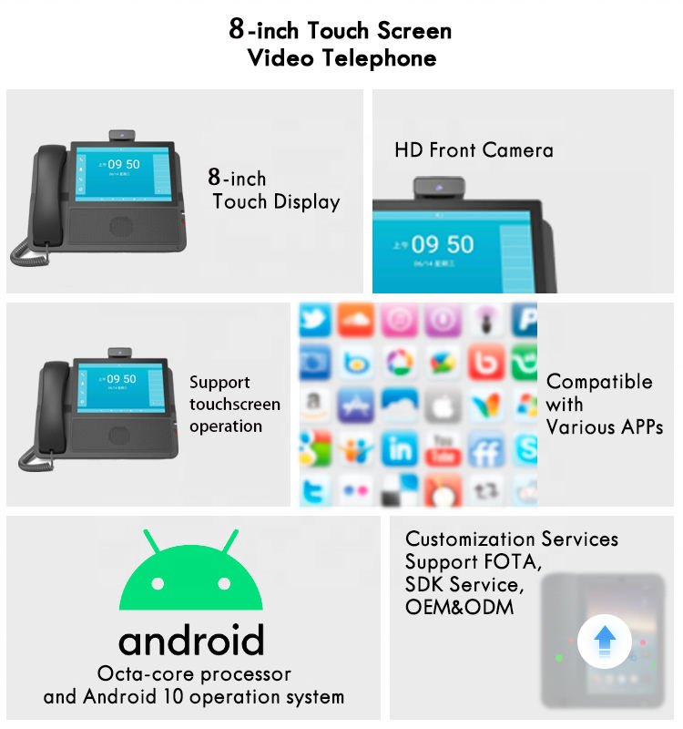 Téléphone intelligent DLNA, téléphone IP VOIP, visioconférence sans fil, téléphone réseau de bureau, hôtel, bureau, hôpital, réunion d'affaires