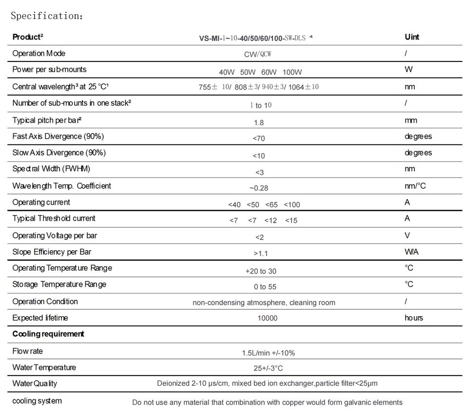 DLS-10 Dilas Germany Micro Channel Diode Laser Stack 400/500/600/700/800/900/1000W 808nm for Hair Removal Machine