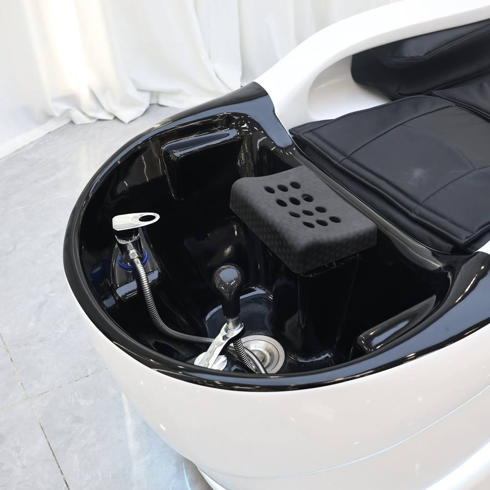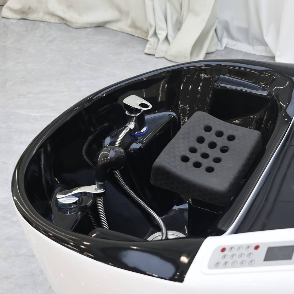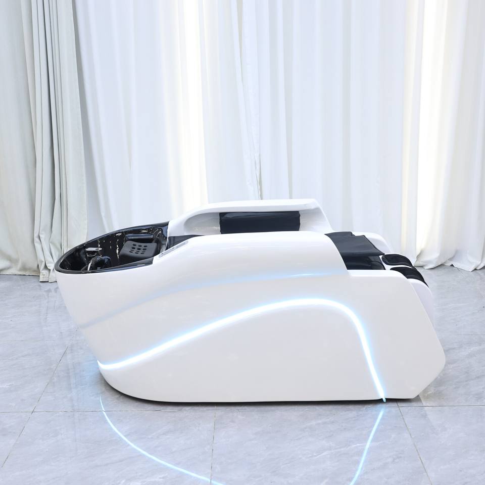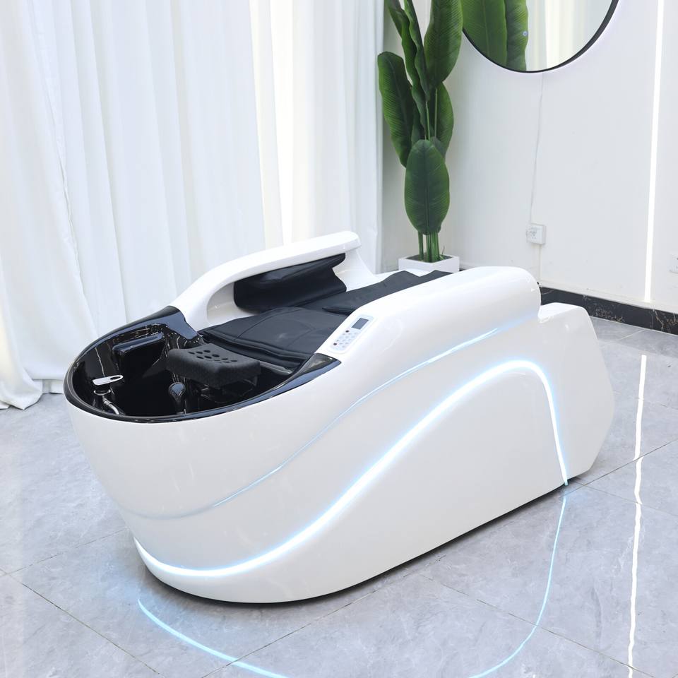 Fauteuil de lavage moderne pour salon et spa, électrique et réglable, avec fonction vapeur pour massage de la tête et bac en fibre de verre – Meilleure vente DM