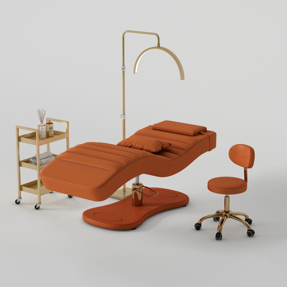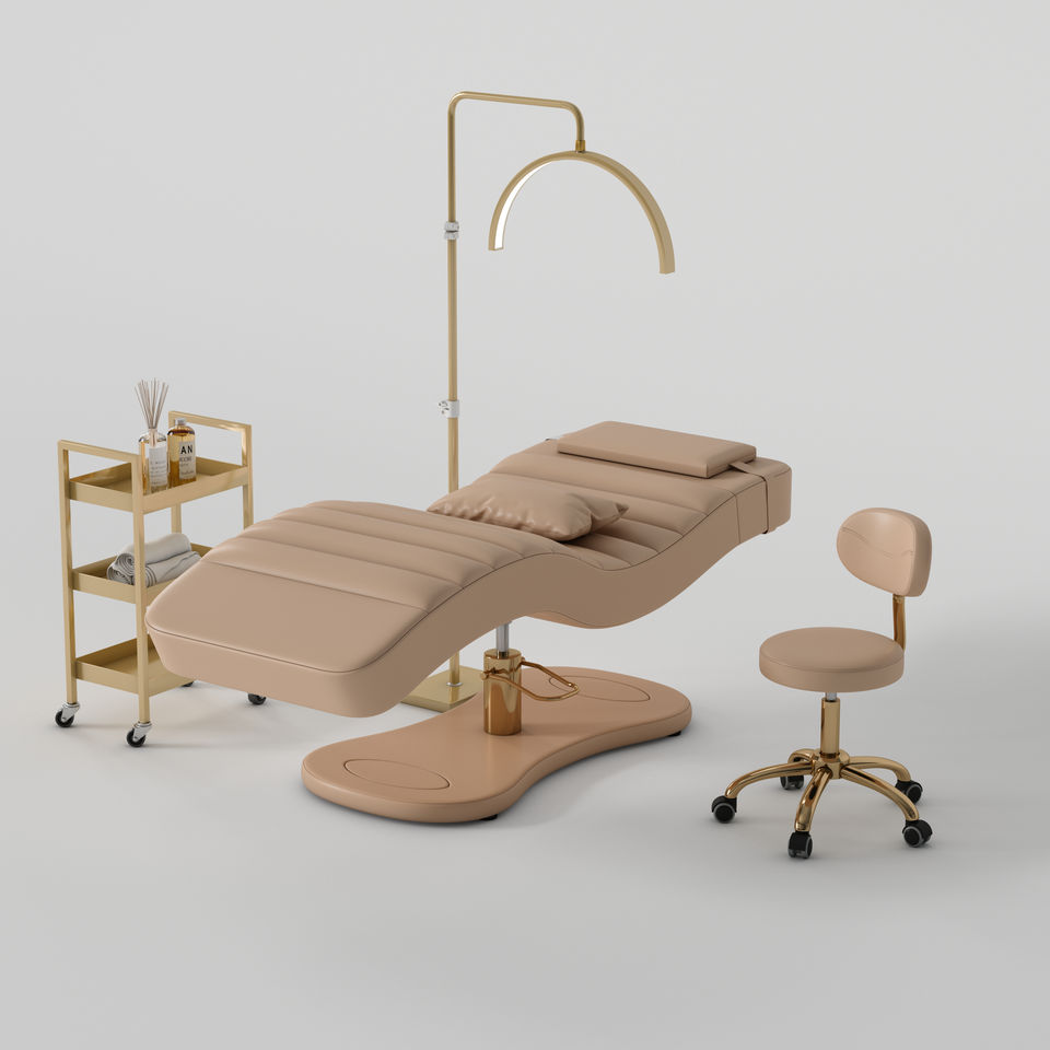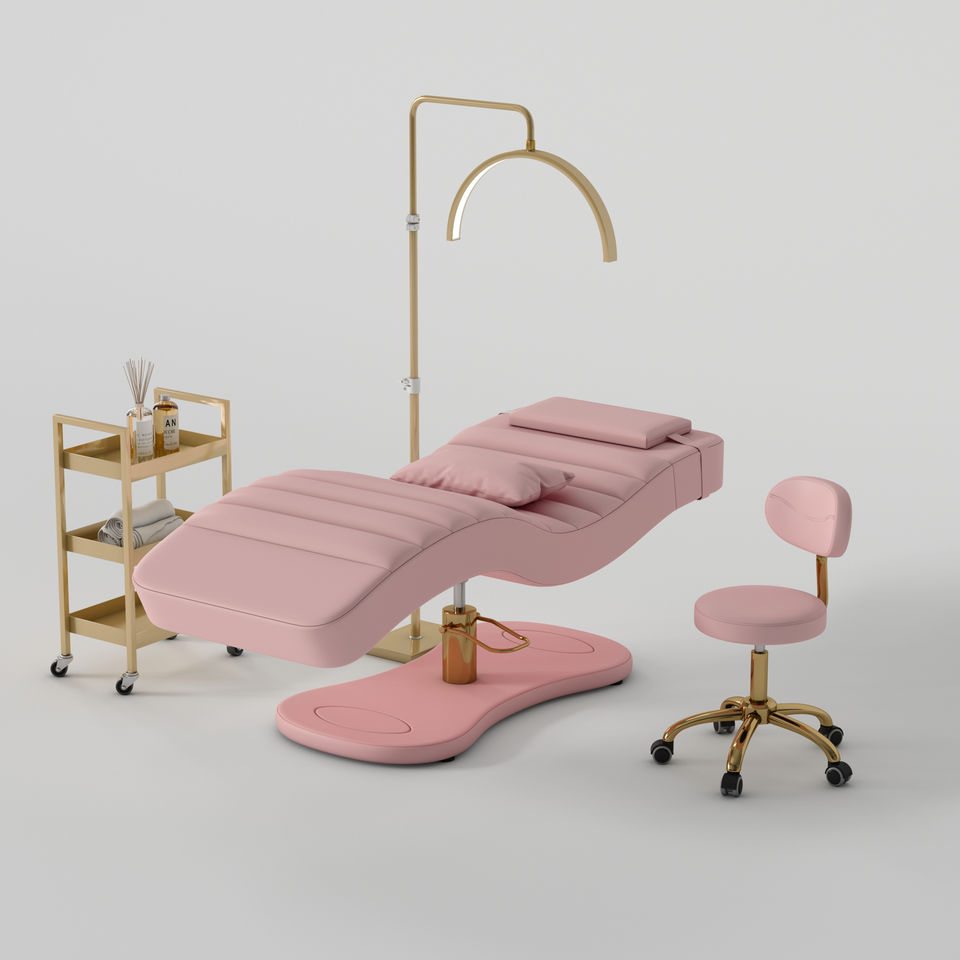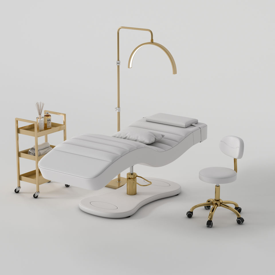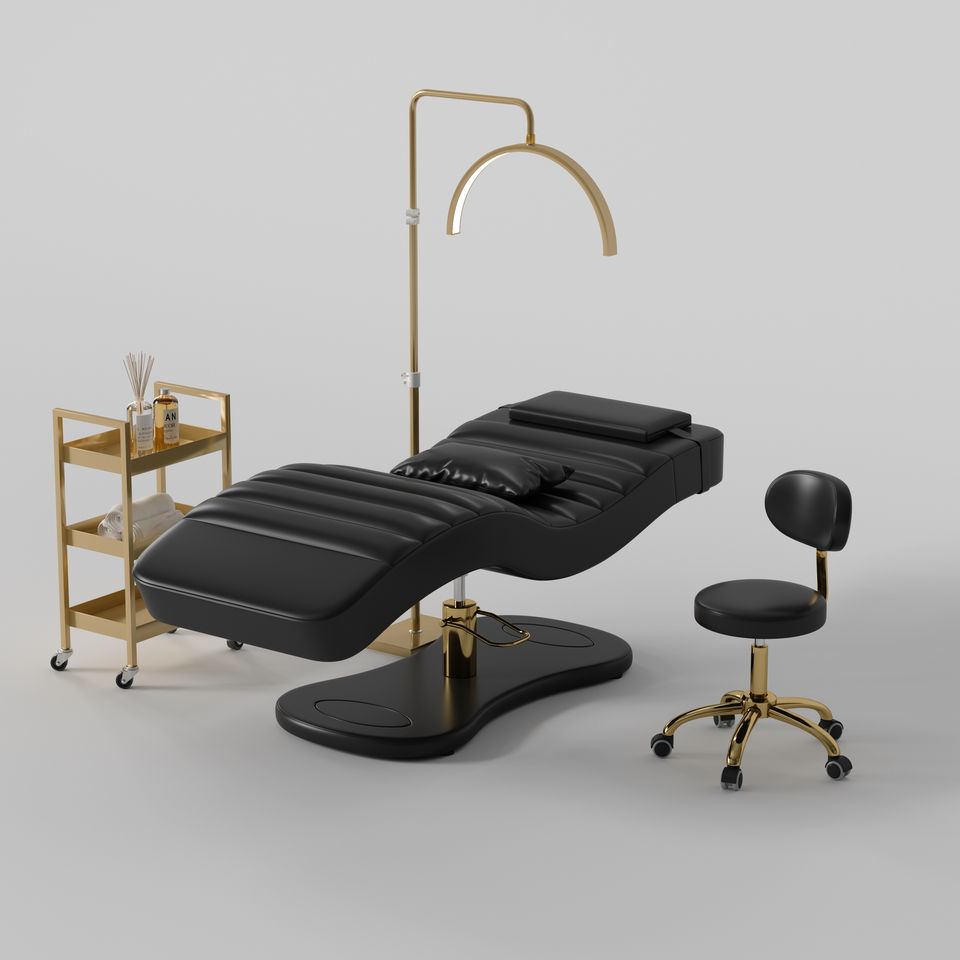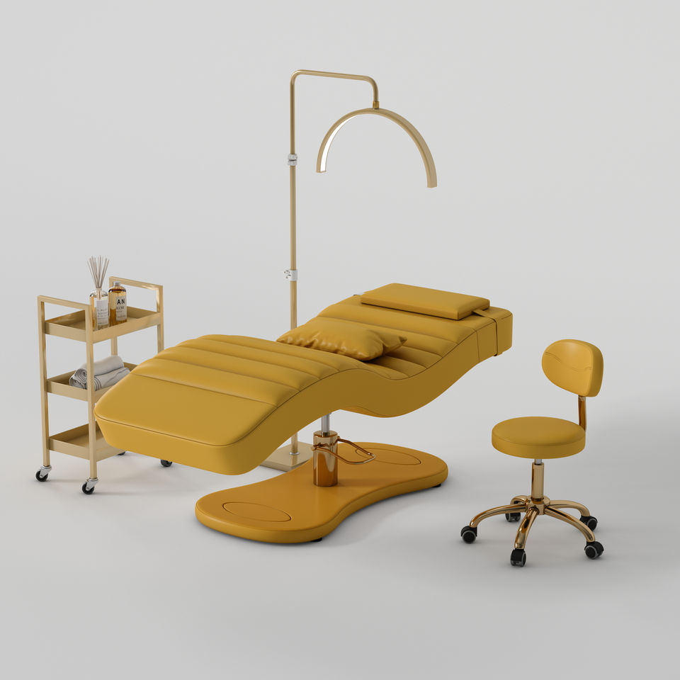 Lit de beauté DM Luxury Gold à base rectangulaire, moderne, réglable en hauteur, pour salon de beauté, spa, sourcils et cils.