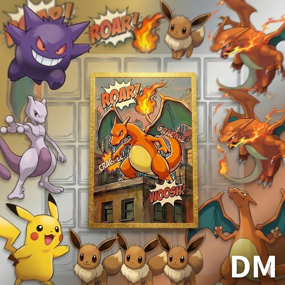 Cartes Métalliques Pokémon Dorées et Argentées en Acier Inoxydable – Cartes à Collectionner TCG – Pikachu, Charizard – Collection Raraissable – Jouets
