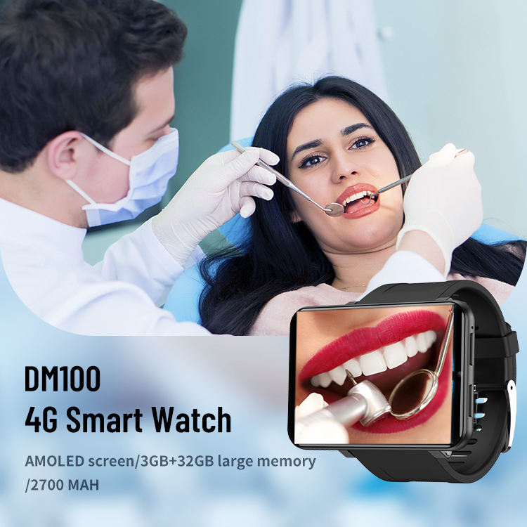 DM100 Dernière montre intelligente 4G étanche WiFi Thermomètre et caméra avec carte SIM Téléphone mobile avec écran tactile et Internet pour système IOS