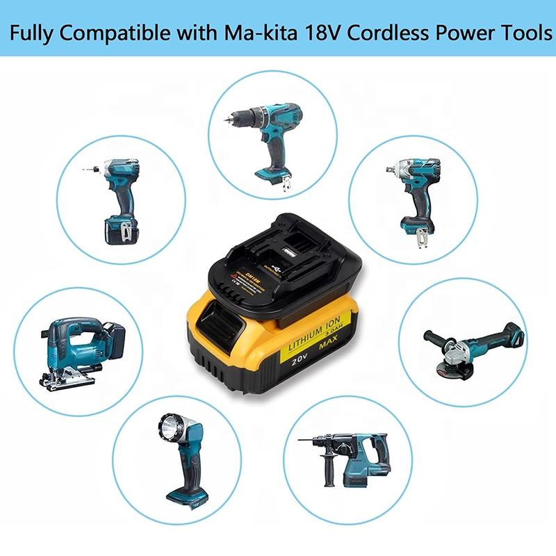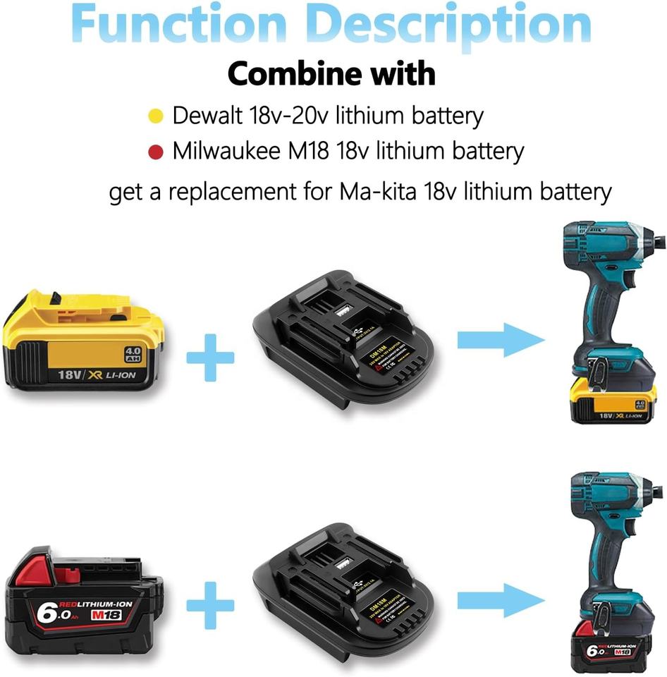 Adaptateur de batterie DM18M compatible avec les batteries Dewalt/Milwaukee 18v M18S, conversion en outils électriques sans fil Makita 18v avec USB