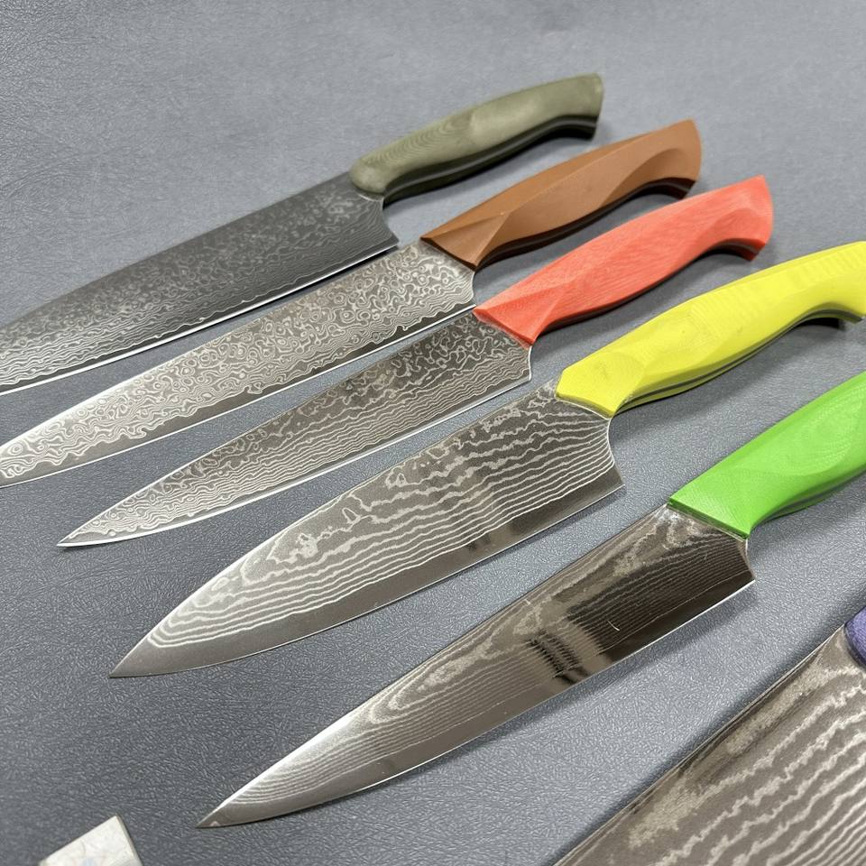 DM5R couleur G10 poignée cuisine couverts rasoir tranchant grands petits couteaux de cuisine lame en acier damas couteaux de cuisine rentables